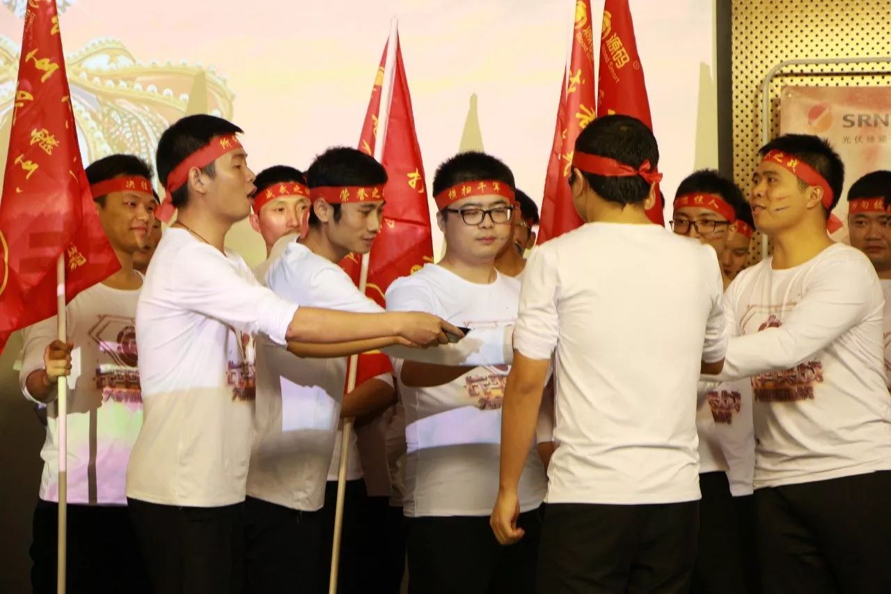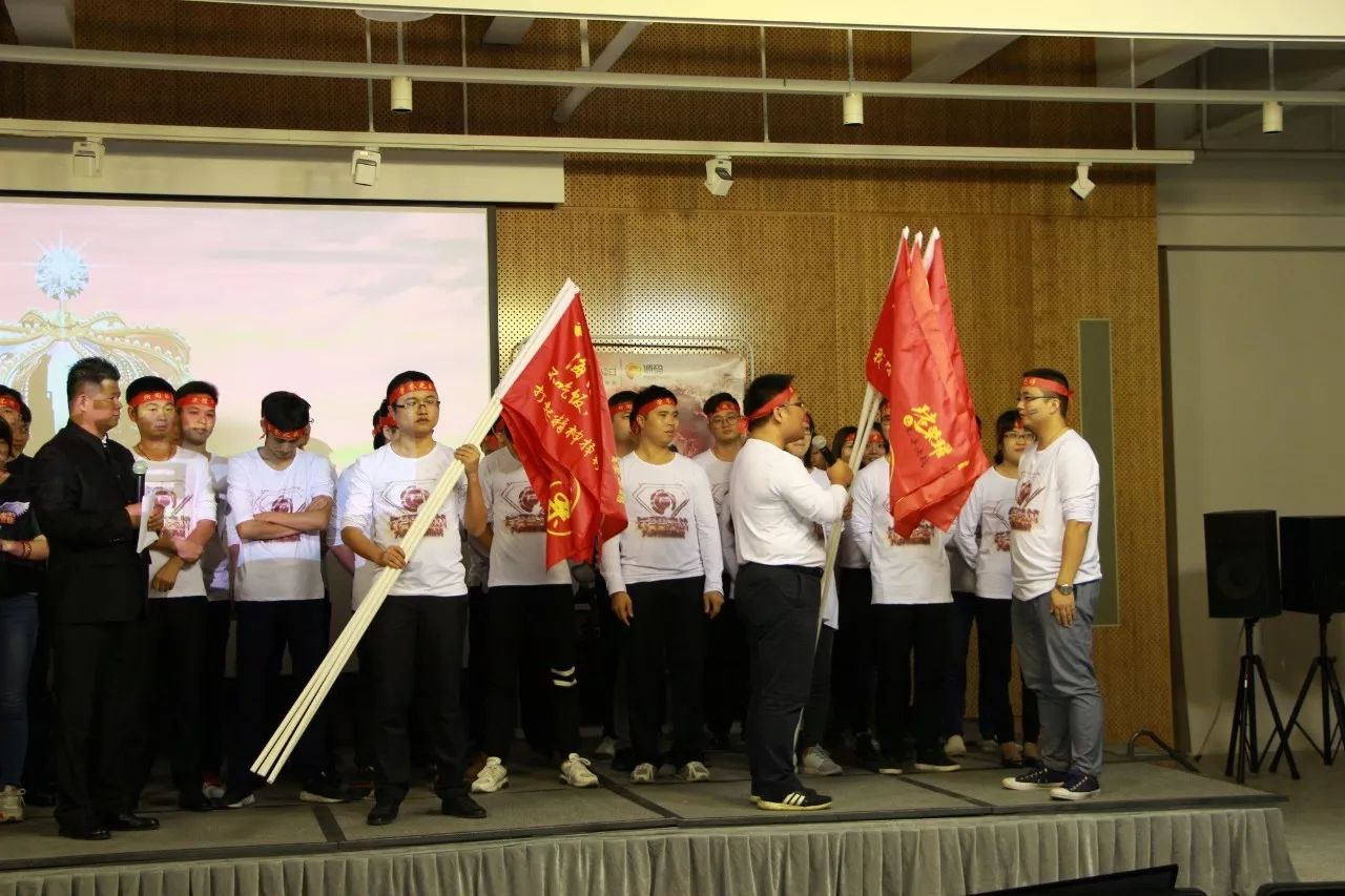 在呼喊公司活動口號的環節,每個部門,每個戰士都在高喊口號,喊得嗓子都已沙?。猴L起云涌,鷹擊長空,人人銳士,唯我稱雄!殺!殺!殺!在內外貿主管整隊授旗環節,兩位主管情緒異常高亢,聲音都已經在顫抖,可是那顫抖的聲音卻振徹會場,激勵士氣,嚇破敵膽。在兩位軍團長情緒的渲染下,各個隊長也表現出大無畏的誓死精神,接過隊旗,喝下“壯士斷腕”一般的軍令酒,驕傲的在會場揮舞自己隊伍的旗幟。