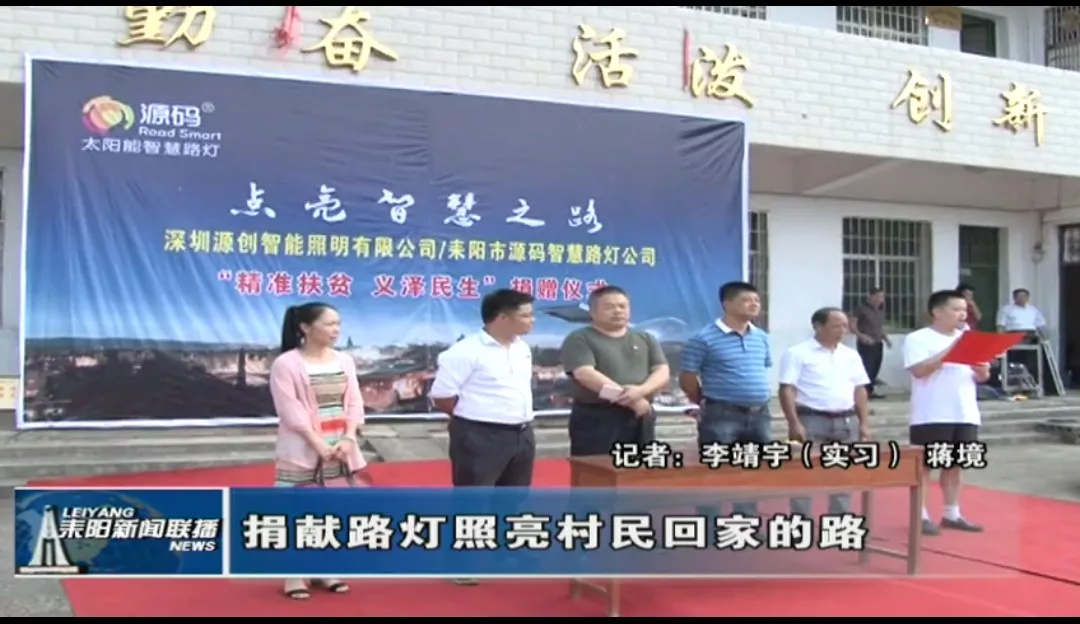 7月28日上午,在耒陽市哲橋鎮領導的主持下,深圳市源創智能照明有限公司和耒陽市源碼智慧路燈公司在哲橋鎮舉行“精準扶貧·義澤民生”太陽能智慧路燈捐贈儀式,儀式匯聚了耒陽市政府相關領導以及耒陽市電視臺新聞記者。